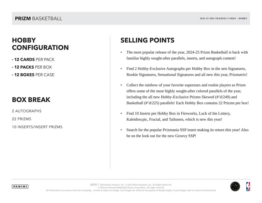 2024-25 Panini Prizm Basketball Hobby Box